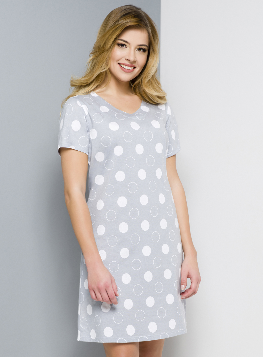 - dámská košilka s krátkým rukávem, délka nad kolena. Výstřih do V, puntík na celé košilce. Kvalitní bavlněný materiál. Výrobce Regina.