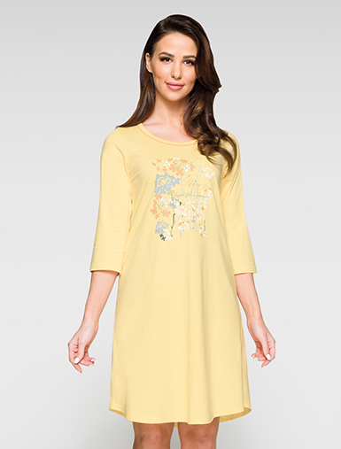- dámská košilka s 3/4 rukávem. Výstřih do kulata. Potisk na přední straně. Délka ke kolenům. Mírně rozšířená košile pro pohodlí. Kvalitní bavlněný materiál. Výrobce Regina.