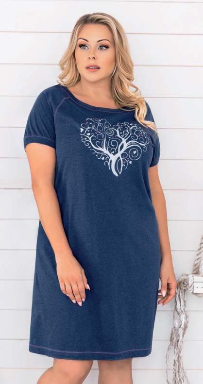 dámská noční košile s krátkým rukávem. Výstřih do kulata je prošit kontrastním lemováním. Kontrastní prošití je i v průramcích a na spodní části košilky. Srdíčko na přední straně. Délka ke kolenům. Výrobce Italian Fashion.